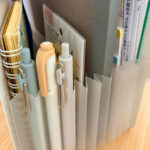まずは自立させて置く方法。奥行のサイズが3cmあるので立てて置いても安定して自立します。