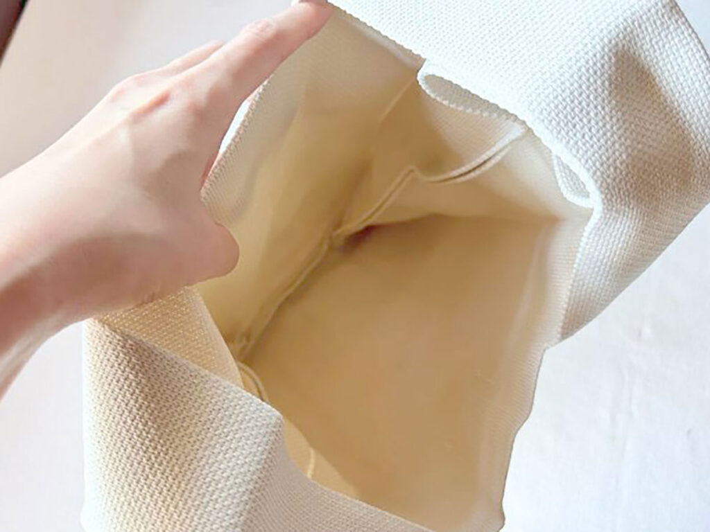 そのポイントは、両サイドのマチ部分を広げられるつくりにあります。