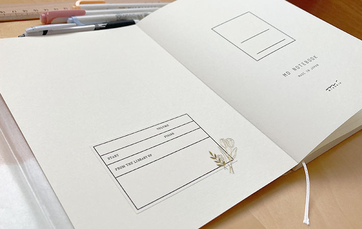 ノートにはインデックスシールがついており、筆者はノートの冒頭ページである見返し部分にペタッ。