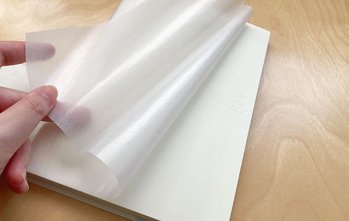 MDノートの表紙にはグラシン紙という薄い紙が巻かれており、汚れを防ぐ役割があるとのこと。