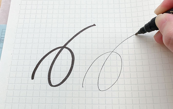 滲みや裏移りが気になる筆ペンですが、細字も太字も問題なく書くことができました。