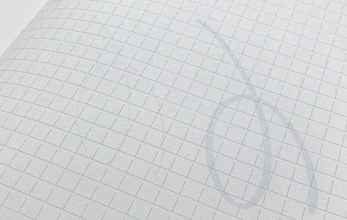 ノートを使う前に、筆者が気に入っている筆記用具で試し書きをしてみました。
