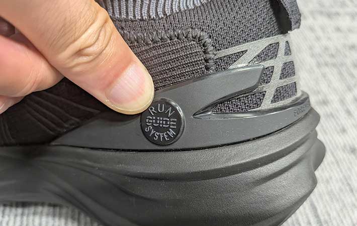 また、接地時のブレを軽減して安定感をもたらすために、カカトに『TPU HEEL SUPPORT』という、プレートを装備。