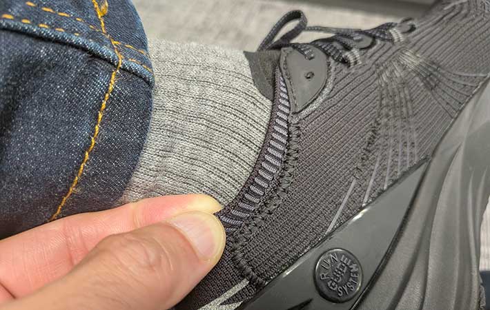 走っていて小石などが入りにくくなっている一方で、筆者の場合はくるぶしにちょいちょい当たって気になります。