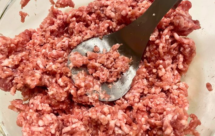 直接手で触れないので、ひき肉のベタつきや冷たさを気にせず作業できるのが大きな魅力。