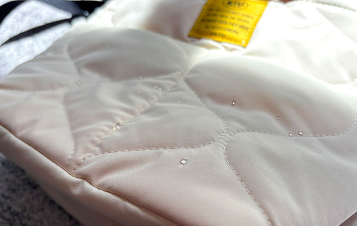 表地に撥水加工が施されているので、ちょっとした雨や水滴くらいであればハンカチでサッと拭くだけでOK。