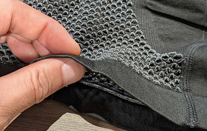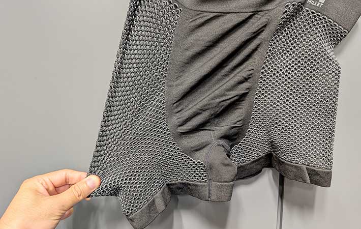 また、厚みのあるメッシュは肌と重ね着したウェアとの間に距離を作ってくれるので、汗冷えや濡れた服がはりつくような感覚もなくなります。