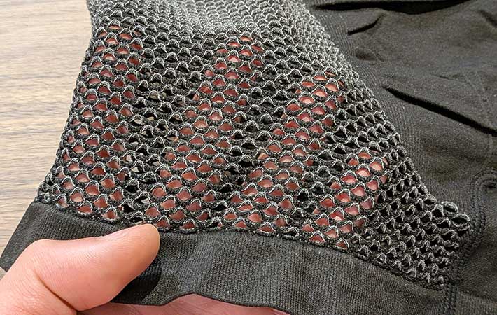 ドライナミックパンツは、ドライナミックTシャツ同様、かさ高のメッシュで編み上げることで汗を素早く吸収する作りになっています。