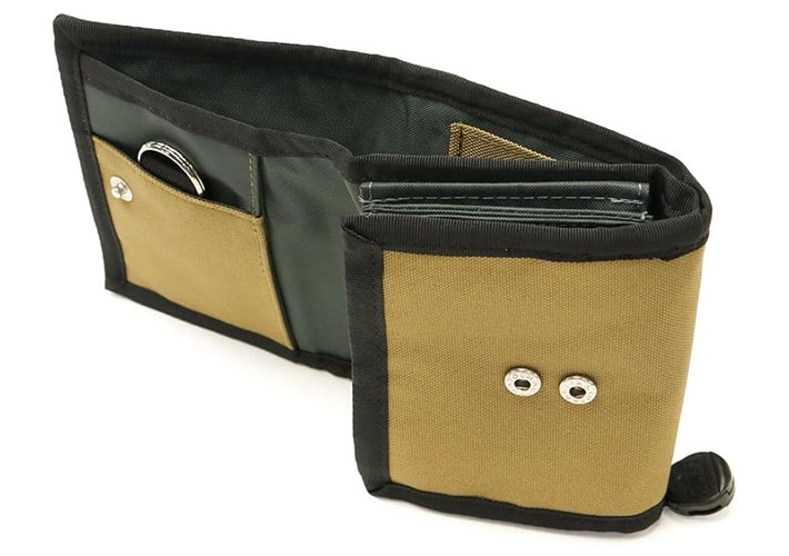 中にはお札と小銭を分けて入れるスペースが備わり、カードポケットやフリーポケット、キーリングなども充実しています。