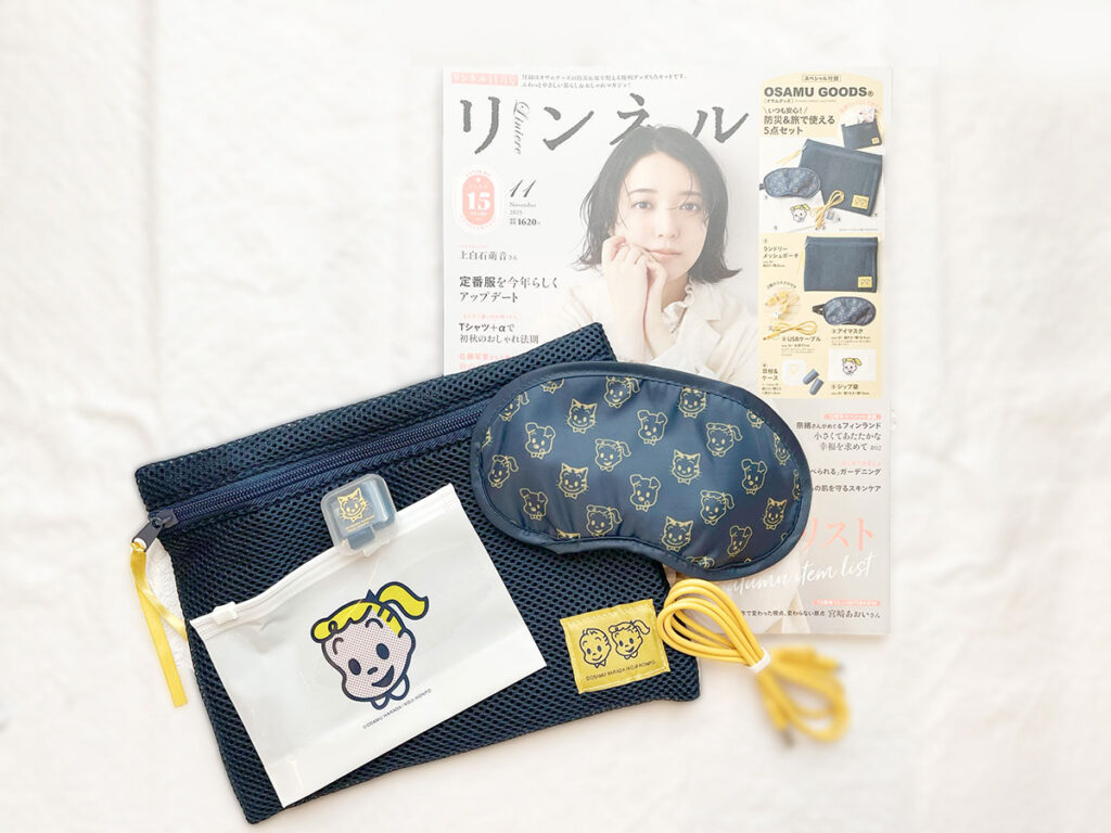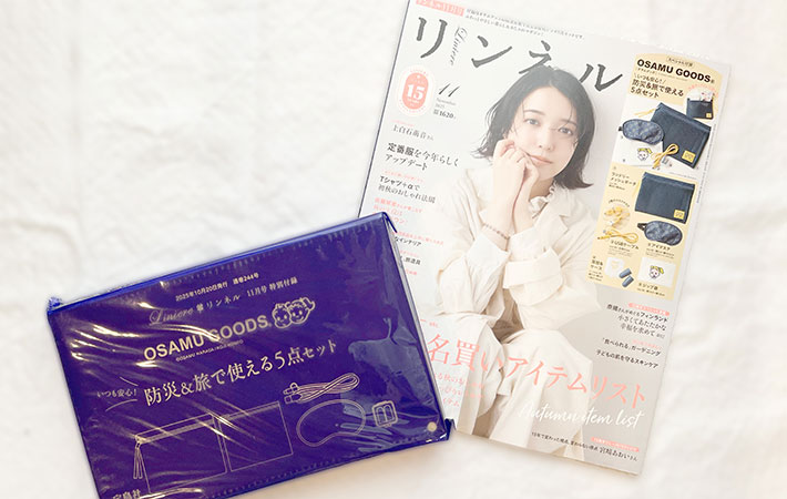 『リンネル』2025年11月号付録『オサムグッズ 防災&旅で使える5点セット』をさっそく開封!