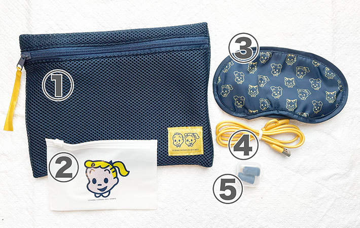 「あると助かる」が全部入り! リンネル付録の防災&旅行で使える5点セットがかわいくてめっちゃ便利【宝島社】 ファッション By - 杉井亜希 更新:2025-10-06 ※本記事はUPDATEが独自に制作したコンテンツです。また、本記事を経由して商品の購入が発生した場合に、ECサイト等から送客手数料を受領することがあります。 年々進化を続ける雑誌付録。そんな中でも、今回紹介する『リンネル』2025年11月号の特別付録には驚きました! 大人気イラストレーター原田治さんが手がける『オサムグッズ』とコラボした付録の内容は、旅行中や防災時に活用できるアイテムが5点そろった豪華セット。 どれも「これ本当に付録でいいの?」と疑ってしまうほどの高クオリティで、実用性とデザイン性を兼ね備えた実力派アイテムばかりです。 本記事では、そんな『オサムグッズ 防災&旅で使える5点セット』の魅力を詳しく紹介します! 『リンネル』2025年11月号付録『オサムグッズ 防災&旅で使える5点セット』をさっそく開封! Amazonで見る 楽天市場で見る ナチュラルファッション、美容、レシピ、ヘルスケア、北欧情報など、日々の暮らしに寄り添う情報を発信する人気雑誌『リンネル』。 2025年11月号の付録は、根強いファンを持つオサムグッズとのコラボレーションが話題。 人気ブランドとタッグを組んで商品展開をすることも多いオサムグッズが、雑誌付録で手に入るなんて驚きです…! そんな豪華5点セットの内容は、以下の通り。 1:ランドリーメッシュポーチ(縦20cm×横26cm) 2:ジッパー袋(縦10.5cm×横15cm) 3:アイマスク(縦9.5cm×横18.5cm) 4:USBケーブル(全長97cm) 5:耳栓&ケース(縦3.5cm×横3.5cm×高さ1.8cm) どのアイテムにもオサムグッズならではのキュートなイラストが入っていて、かねてからオサムグッズを集めていた筆者にはたまらないデザインです。 さらに注目すべき点は、各アイテムの実用性の高さ。 かわいいだけではなく、どれも日常や旅先で活躍すること間違いなしの機能性を備えているんですよ。 『オサムグッズ 防災&旅で使える5点セット』の各アイテムを詳しく紹介! 今回の付録は、暮らしや旅先で『あると安心』というアイテムを集めたセット。 ここからはそれぞれのアイテムの仕様やリアルな使い心地を紹介していきます! ランドリーメッシュポーチ まずはネイビー×イエローのコントラストがかわいい、メッシュポーチから見ていきましょう。 大きすぎず小さすぎず、小物の整理に役立ちそうなサイズ感です! 右下にはオサムグッズの代表的キャラクターでもある、ジャック&ジルのイラストが。 シンプルなメッシュポーチのちょうどいいアクセントになっています。 ナイロン製の生地は程よく肉厚で、もっちりした肌触り。 チープ感はまったくありません。 ジッパープルつきのファスナーのおかげで、開閉はとってもスムーズ。 中に荷物を入れた状態でも開け閉めにもたつくことはなさそう! さらに驚きなのが、ランドリーネットとしても使えるという点! ランドリーネットとしてはやや小さめな印象ですが、どれくらい洗濯物が入るかもチェックしておきましょう。 まずは冬用ソックスを2セット入れてみると…。 余裕で収まりました! 筆者は旅先でコインランドリーを活用することが多いので、持ち運びに便利なランドリーネットはかなり重宝しそう…! 伸び縮みしやすいリブ素材の靴下や、デリケートな下着を洗う時なんかに使えそうです。 思いのほか収納力がありそうなので、次は女性用のTシャツもインしてみることに! なんと、こちらもスッポリきれいに収まりました! サイズ的にはTシャツがギリギリな印象ですが、それでも洋服1枚分が入るのであれば収納力に文句なし。 メッシュ素材ゆえに、洗濯後は軽く干すだけですぐに乾くのも好ポイントです。 小物入れにもランドリーネットにもなるメッシュポーチは、旅のお供にぴったり! ジッパー袋 にっこり笑顔のジルがポイントになったジッパー袋は、旅先で使用する細々したアイテムの収納にとっても便利。 開口部はスライダー式なので開け閉めはノンストレス。 イラスト部分以外はクリアな白で統一されていて、清潔感のあるデザインです。 念の為に持ち歩いておきたい常備薬やサプリ、絆創膏など、小さなアイテムをまとめる際に頼りになります。 撥水性のある素材なので、個包装のシャンプーや洗顔料をまとめて入れて浴室に持ち込むのもOK!アイディア次第でいろいろな使い方ができそうです。 アイマスク 長時間のフライトや、滞在先でなかなか寝付けない時に活躍するアイマスク。 等間隔に散りばめられたイラストがとってもキュート!総柄デザインながら、色使いがビビッドすぎないので大人でも使いやすい雰囲気です。 ゴム部分はアジャスターつきなので、サイズ感は自由に調整できます。 生地は表裏ともにツルッとしたナイロン素材。ファンデーションや皮脂が多少ついても、さっとお手入れできそうです。 実際につけてみるとこんな感じ! ご覧の通り目元