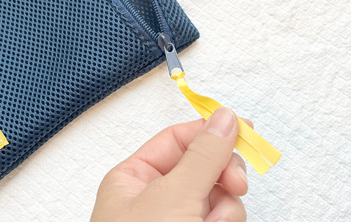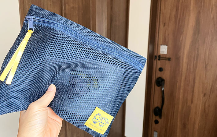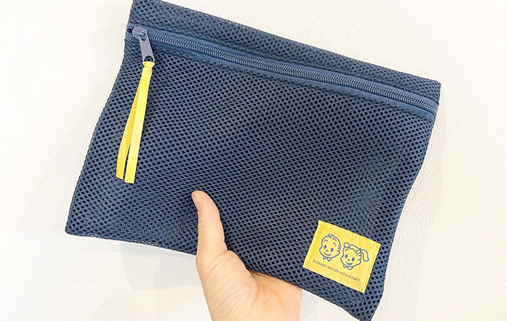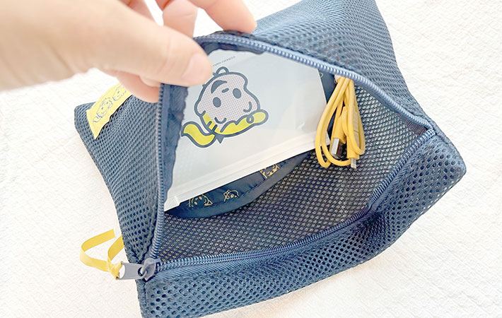 まずはネイビー×イエローのコントラストがかわいい、メッシュポーチから見ていきましょう。