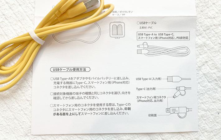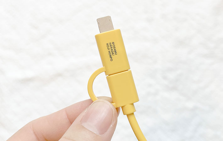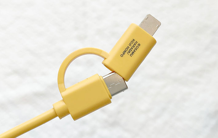 コネクタは2種のヘッドで、充電したい機器に合わせて使い分けができるという優れもの。