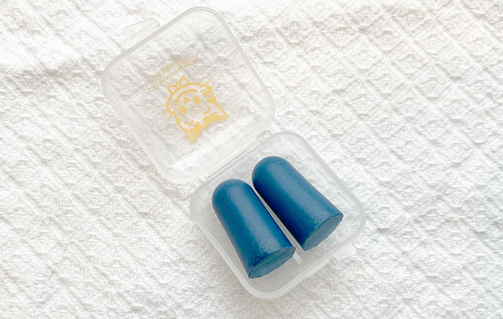 この小さなケースの中に入っているのは、フライト中や宿泊先で周囲の音が気になる時に役立つ耳栓。