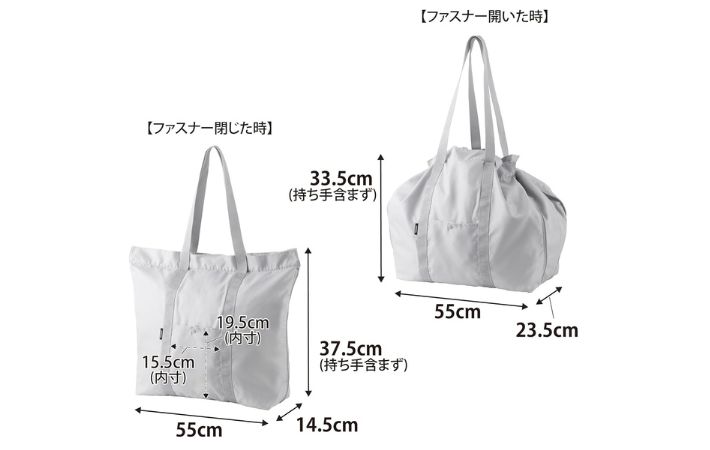 ファスナーを開いた時のサイズ(約):幅55cm×奥行23.5cm×高さ33.5cm(持ち手含まず)