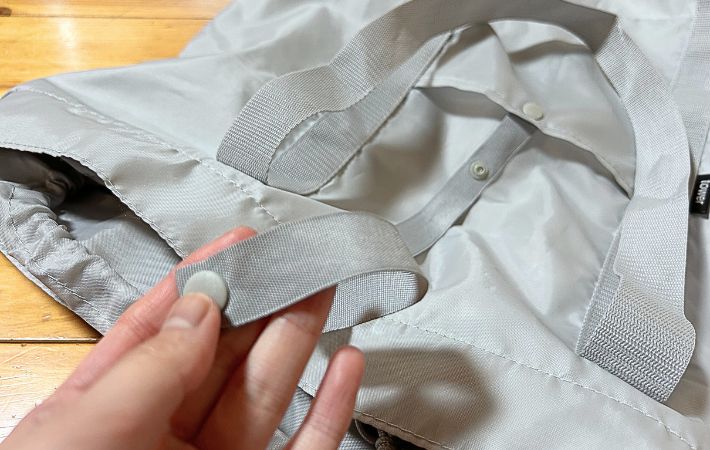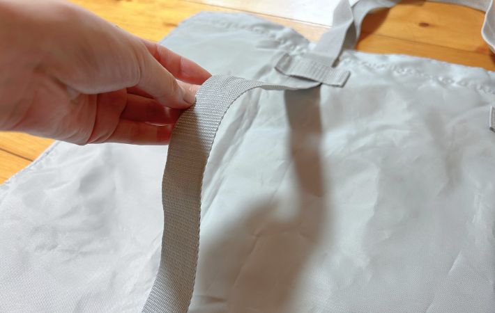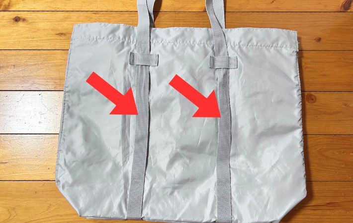 まずは裏側にあるポリプロピレン素材の持ち手の位置に注目してください。