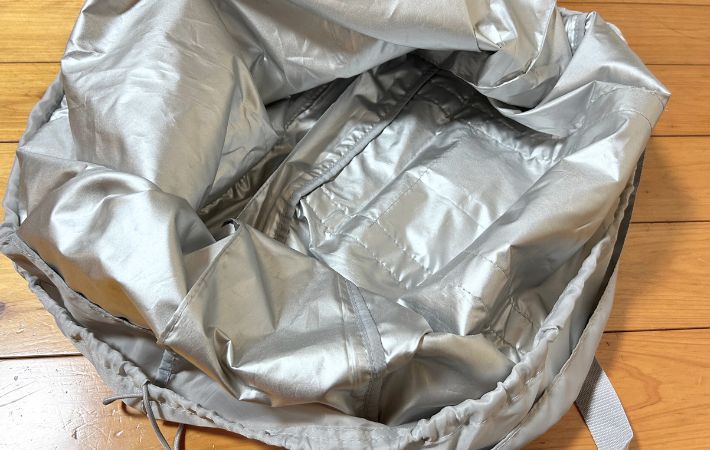 巾着ひもで開口部をキュッとしっかり閉じられるため、冷気を逃がさず安心。