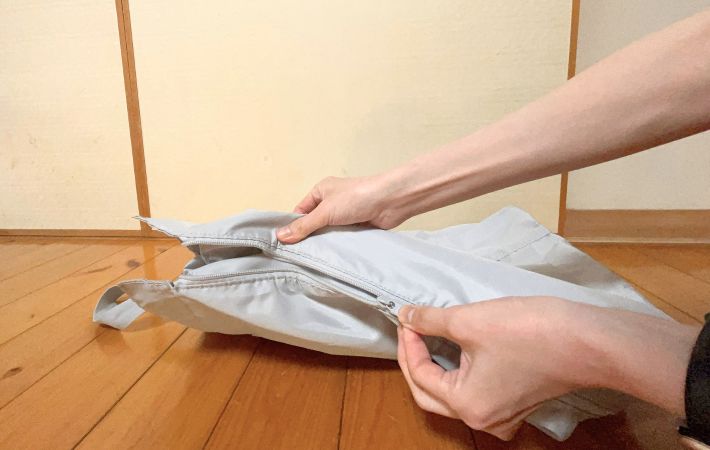 さらに便利なのが、周りにぐるりと配置されたファスナーでサイズを変えられるところ。