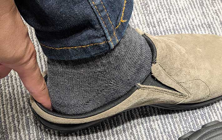 カカトのあまり具合は、奥までつま先を突っ込んで指が一本入るくらいです。