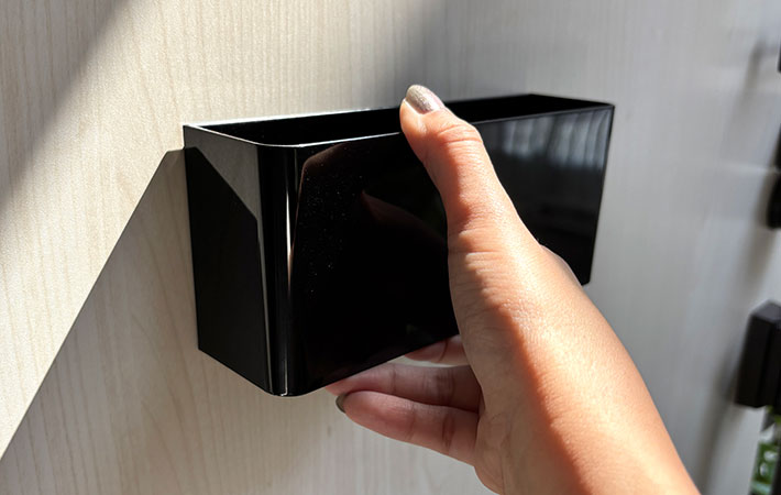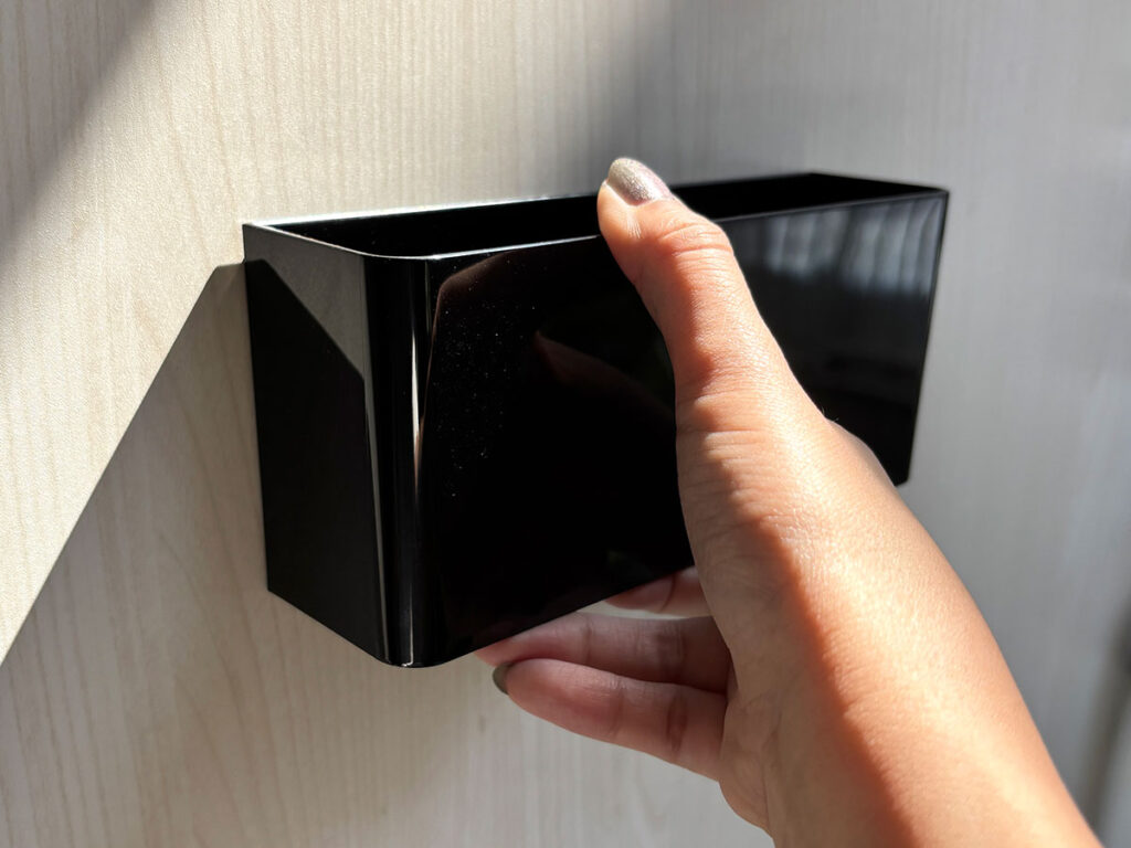 このアイテムは組み立ての必要はなく、スチール面にマグネットで貼り付けるだけ。