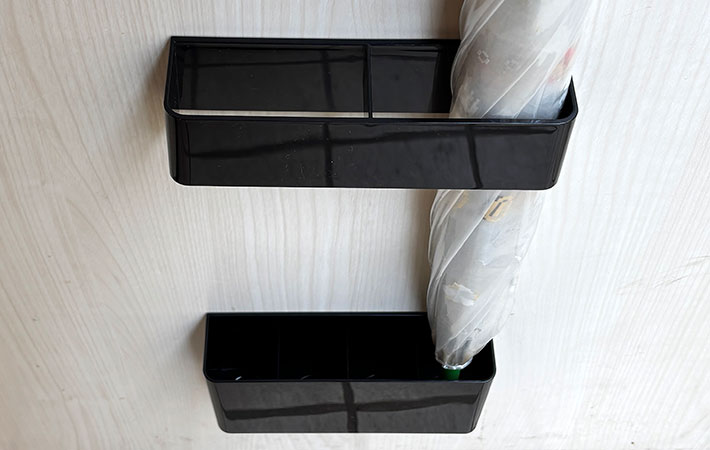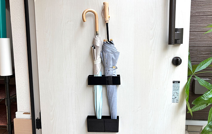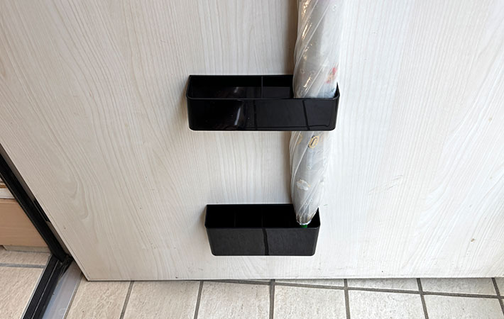 筆者は長傘メインに収納したかったため、ドアの下のほうに設置しました。