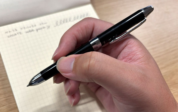 黒ボールペンのほかに、赤ボールペンとシャープペンシルも搭載しています。