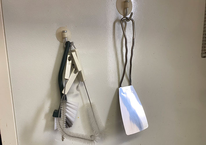 ハンドルは輪っか状になっているので、使いたい時にさっと手に取れるように引っかけておくのもおすすめ。