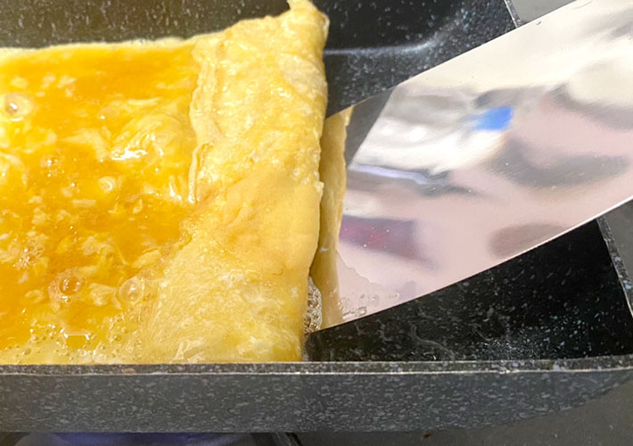 ターナーの横幅もしっかりあるので、玉子を巻く時にも支えやすいですよ。