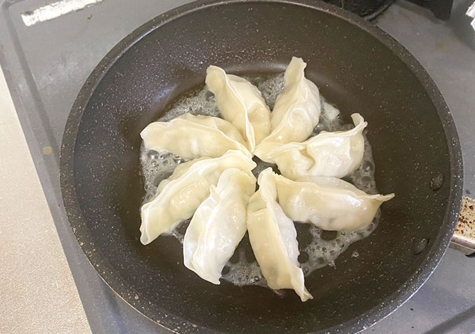 もう間もなく完成…というところで、『ひっくり返す』という一大イベントを控える焼き餃子。