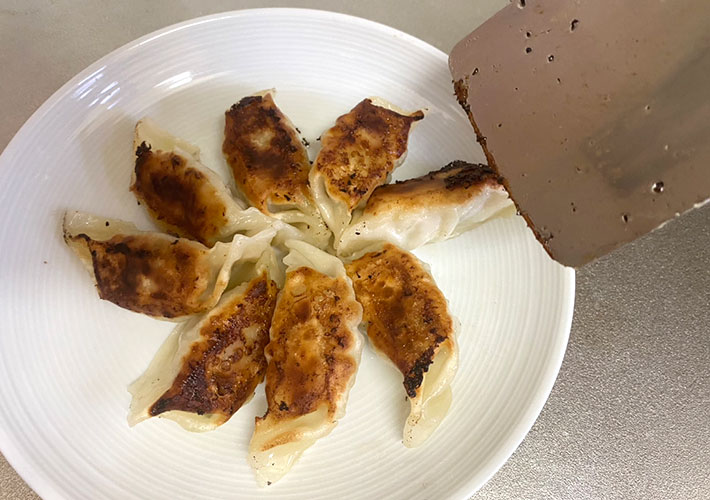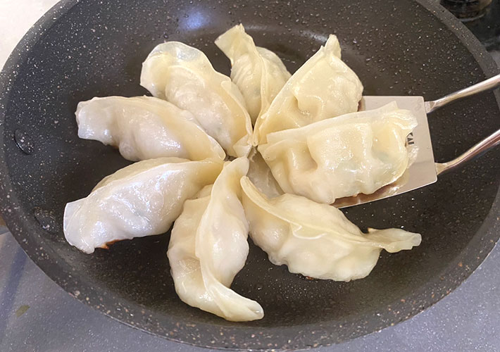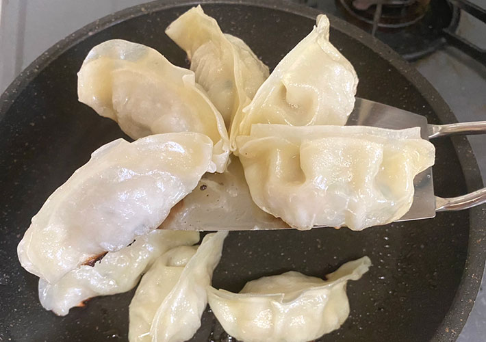 餃子の皮は薄くて破けやすいので力加減が難しいですが、しっかりしなる貝印のターナーなら、皮を傷付けずに下に入り込みますよ。