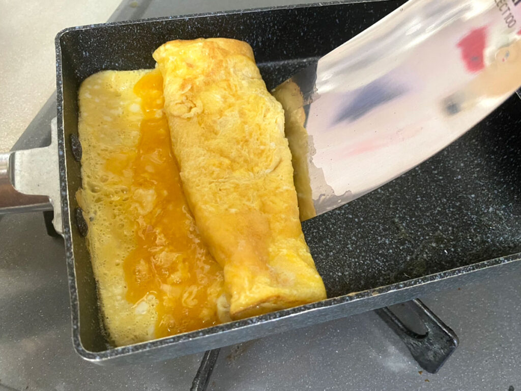 でも貝印のターナーを導入してみて、ひっくり返すのがうまくなり、以前よりもきれいに玉子焼きを焼けるように!