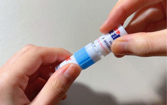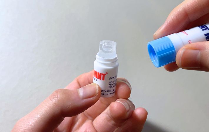 リップクリームやスティックのりのような形状で、ポケットや小さなポーチに入れてもかさばらず持ち運べます。