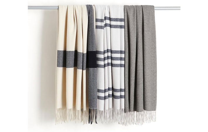 ・薄手のとてもシンプルなブランケット。肌触りも柔らかくて軽いので、家の中で気軽に持ち運べてどこでも使えます。