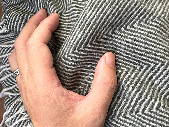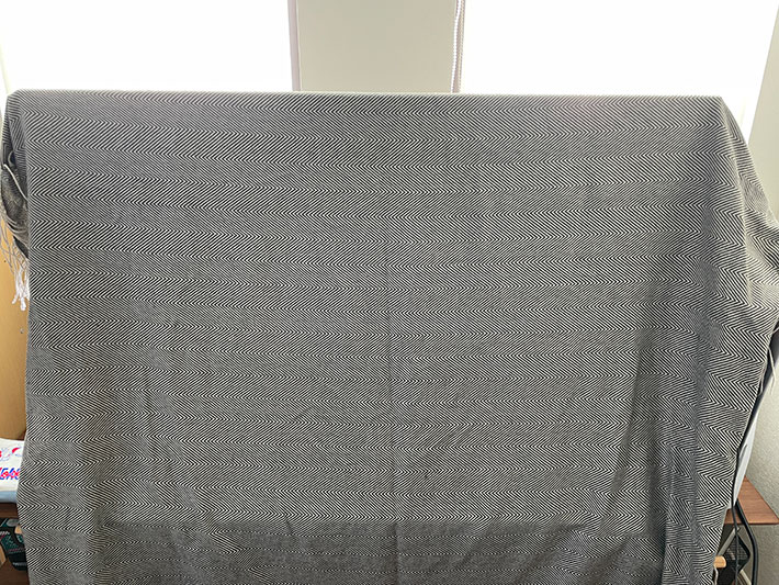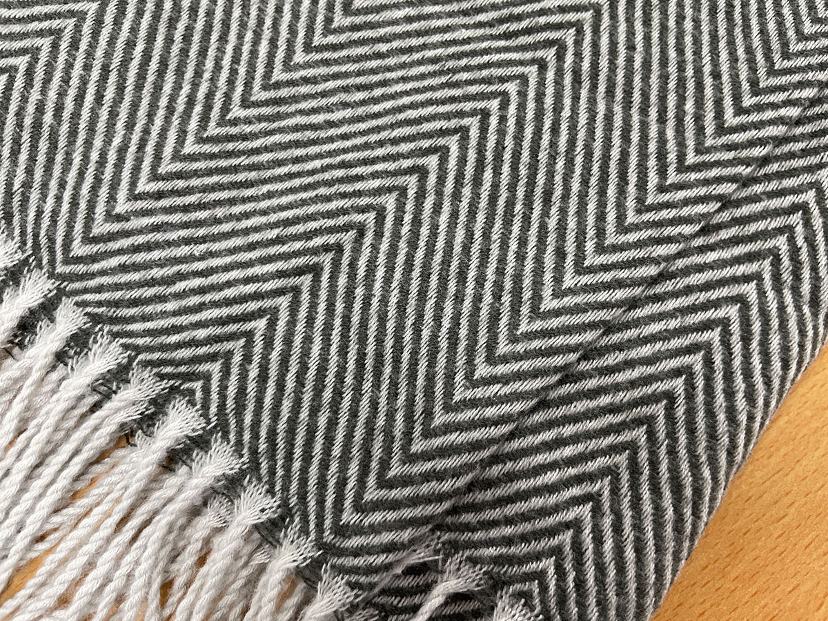 筆者は、遠くから見るとシンプルなグレーに見える『ヘリンボーン(ニシンの骨に似た、V字をジグザグに連続させた模様)柄』をチョイスしました。