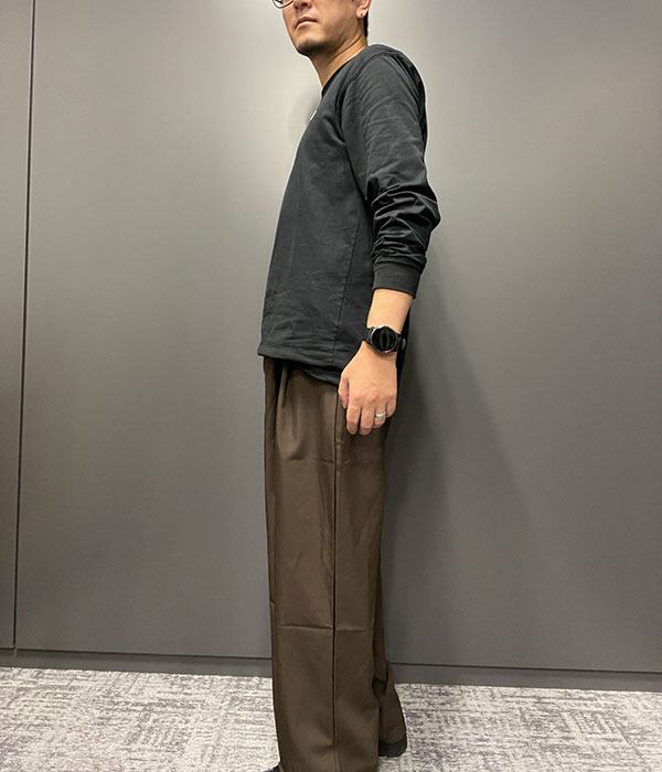 生地のことにばかり触れてしまいましたが、シンプルに着てみただけでもかっこよく、使いやすいTシャツ。