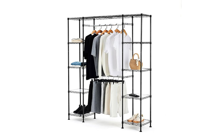 以前、Amazonのプライベートブランドである『Amazonベーシック』の収納ラックで、衣類をまとめることに成功しました。