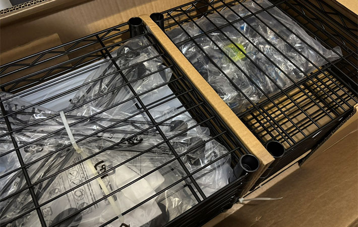 ダンボールを開封すると、棚板をはじめとしたパーツがぎっしり。