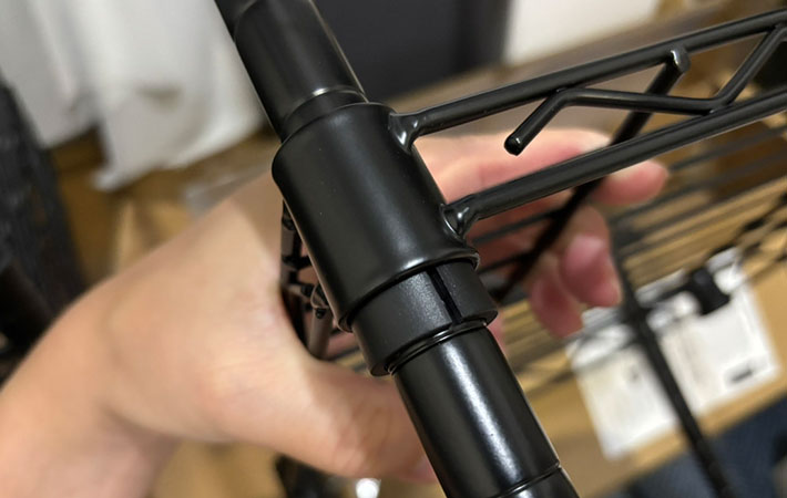 スチール製の脚に、ネジ式のパーツをくるくる回して取りつけ
