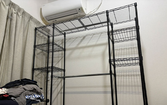 早速山積みになっていた服をハンガーにかけたり、収納ラックにしまったりすることに。