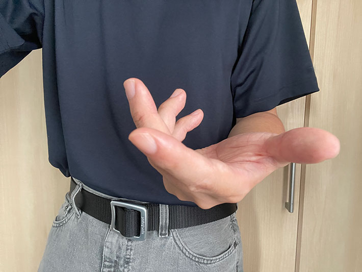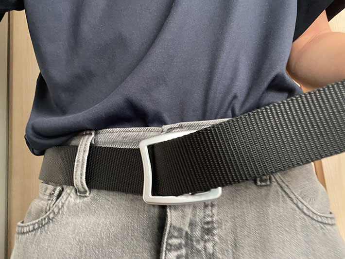 ベルトに穴がなく、無段階で調整できるので、いろいろなボトムスに使えるのも非常にいいですね。