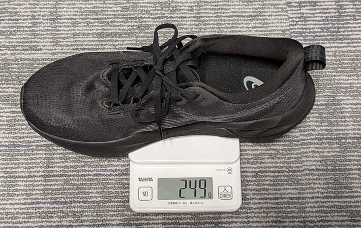 重量は27cmで249gなので、一般的なランニングシューズといったところ。