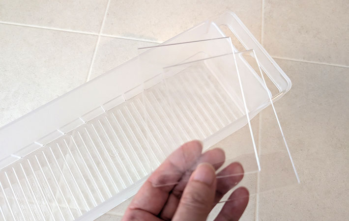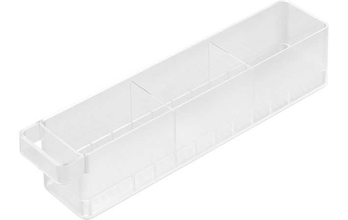 ボックス全体は乳白色で、仕切り用に透明な板が2枚ついています。