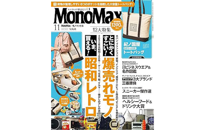 『MonoMax』2025年11月号はネットや書店などで販売されているので、便利なトートバッグが欲しい人はこの機会をお見逃しなく!