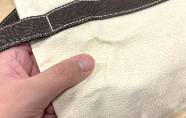 硬めの質感でしっかりとしたキャンバス生地が使用されているので、重たい物を入れても運ぶことができそうです。