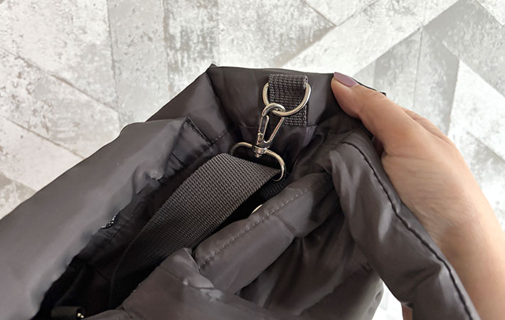 ストラップを外してハンドバッグとして使えば、また違った雰囲気に。
