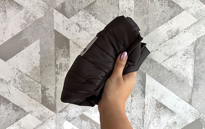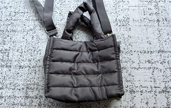 中綿入りのキルティング素材は軽くて柔らかく、持ち手部分もふわふわで握り心地も抜群。