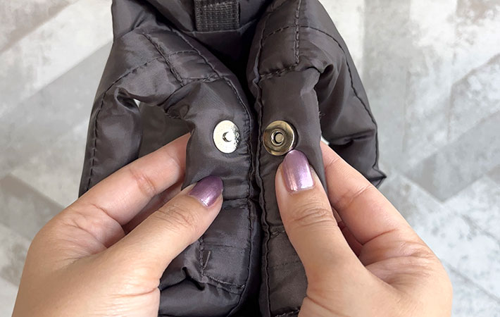 開口部にはマグネットの留め具がついていて、中身が見えにくくなるのも嬉しいと感じるポイント。