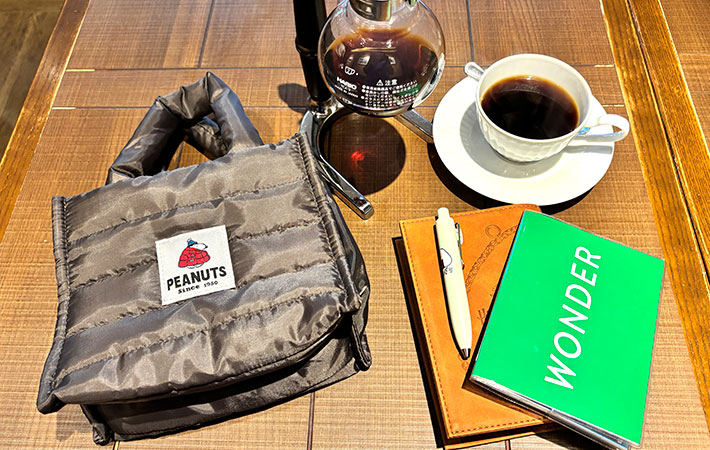 お財布、スマホ、文庫本とミニノートを入れて、カフェへ。