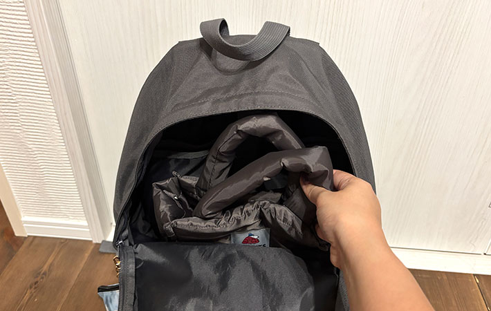 さらにこの上に折りたたみ傘を追加で入れられる余力まであります。