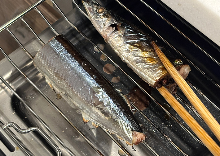 そんな魚焼きグリルで調理したサンマを焼き終えると…。